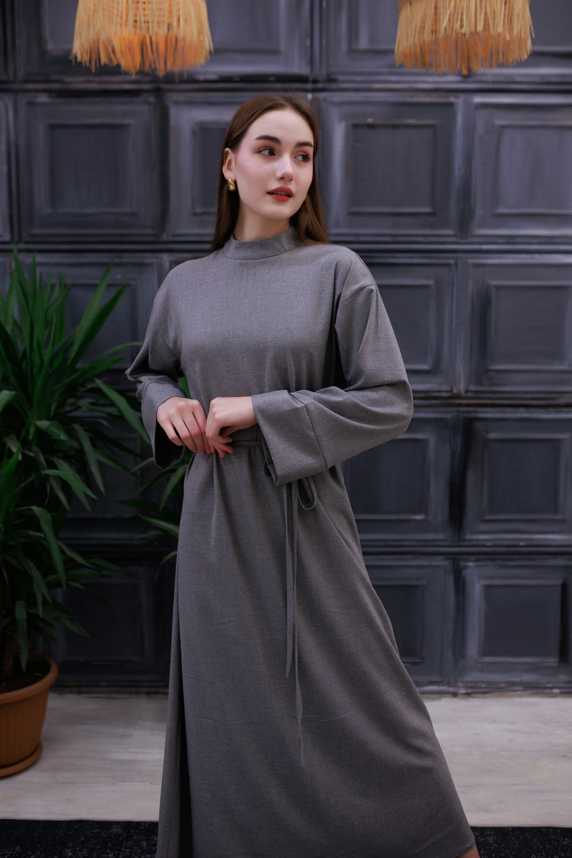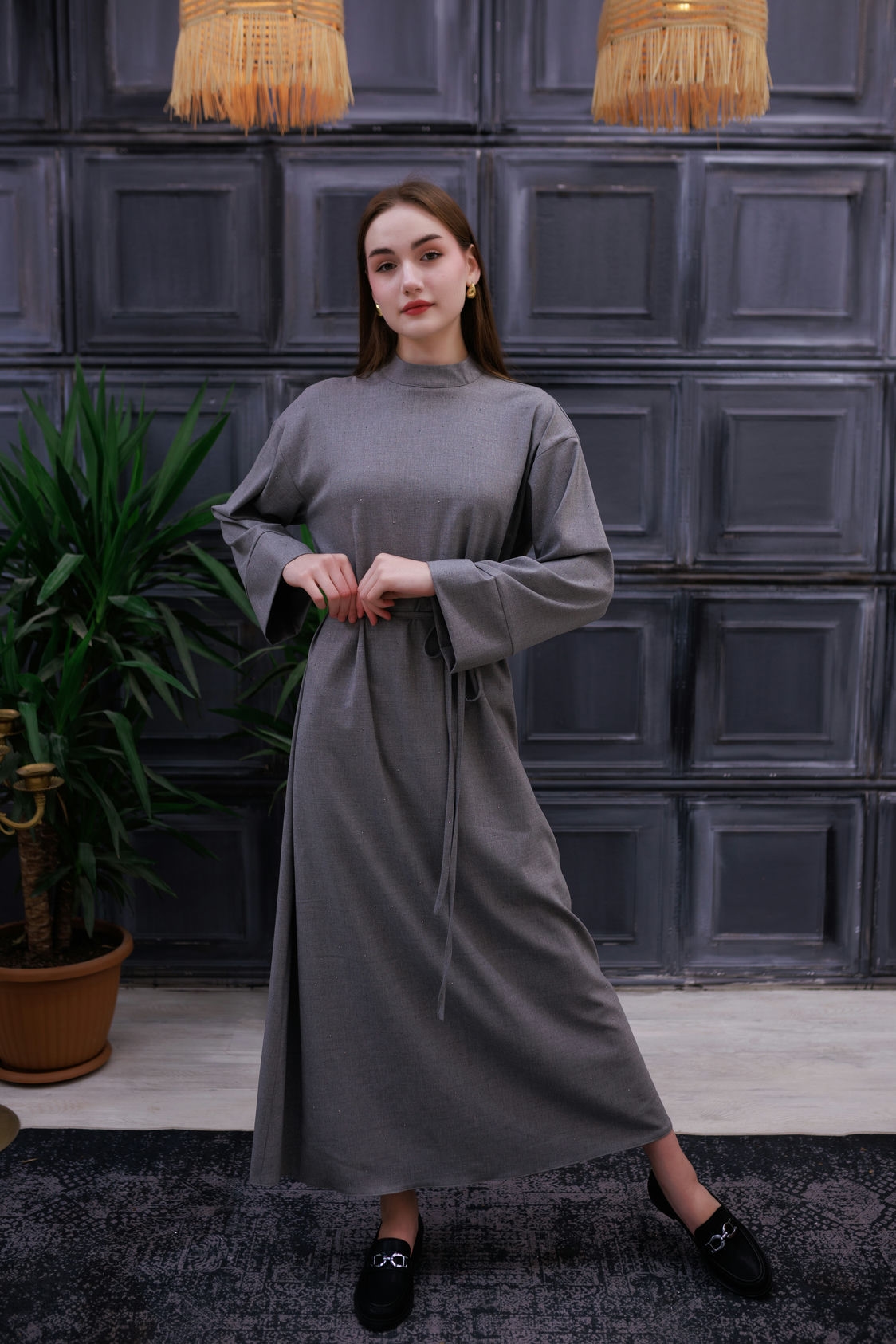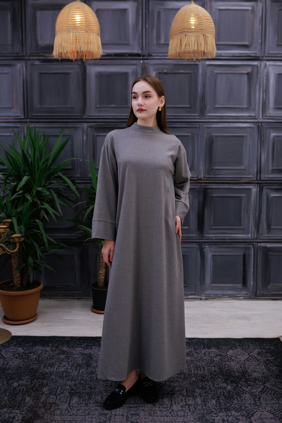Miss Işıltı Poliviskon Elbise Füme