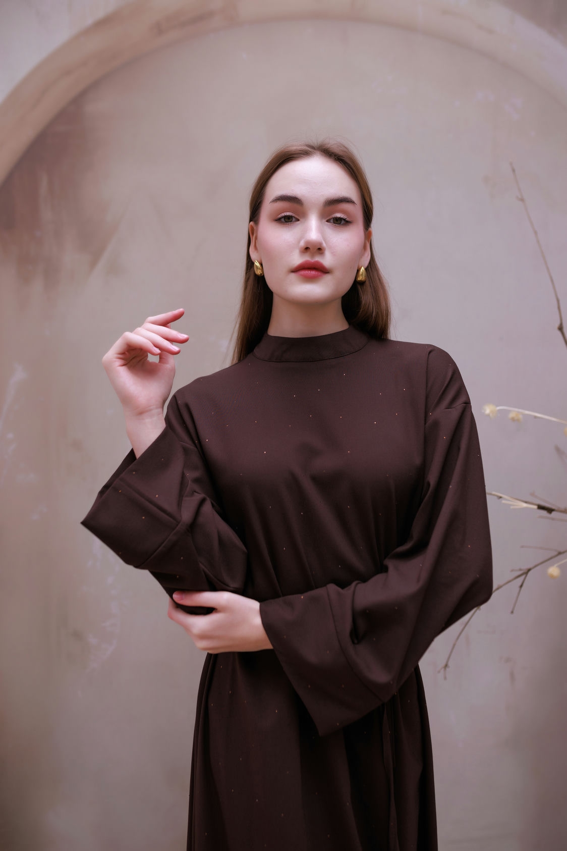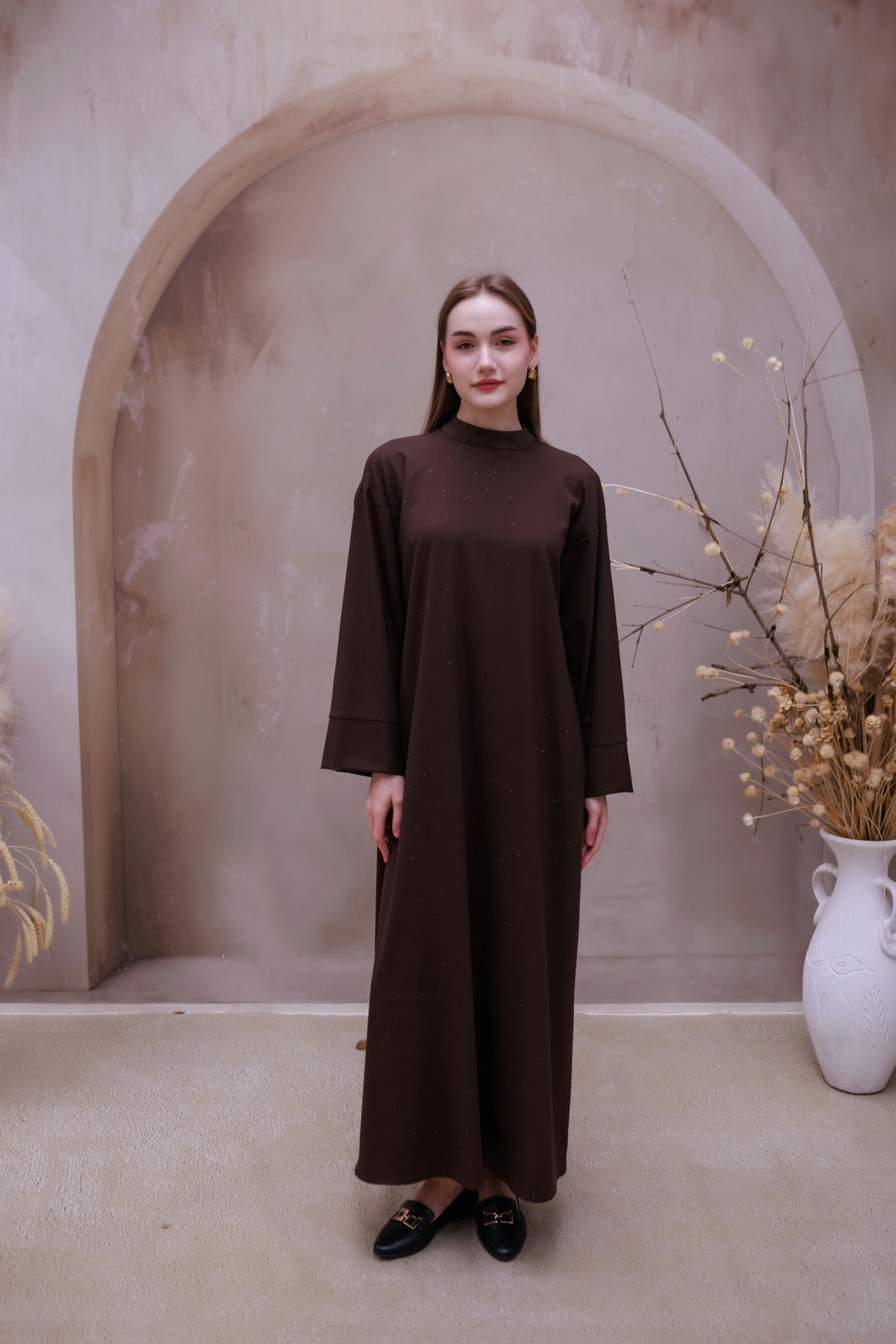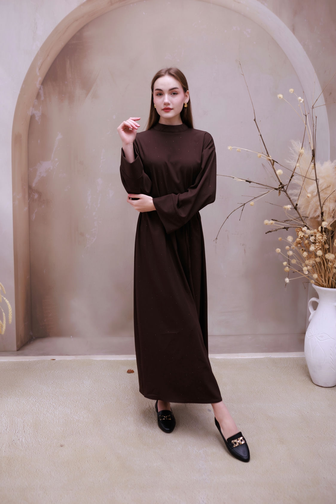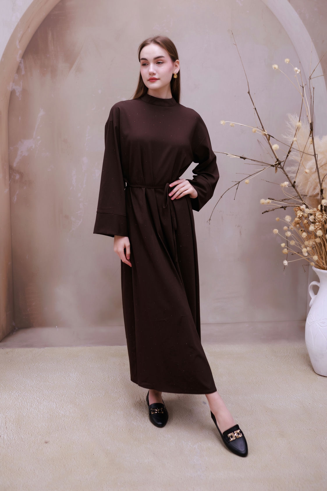 Miss Işıltı Poliviskon Elbise Kahve