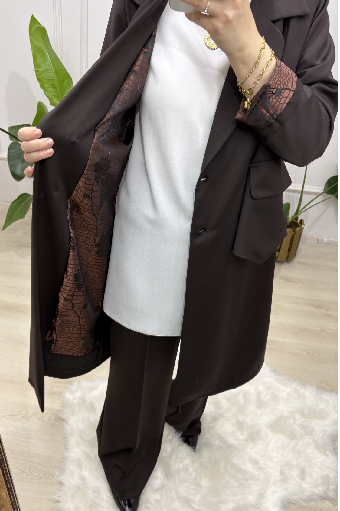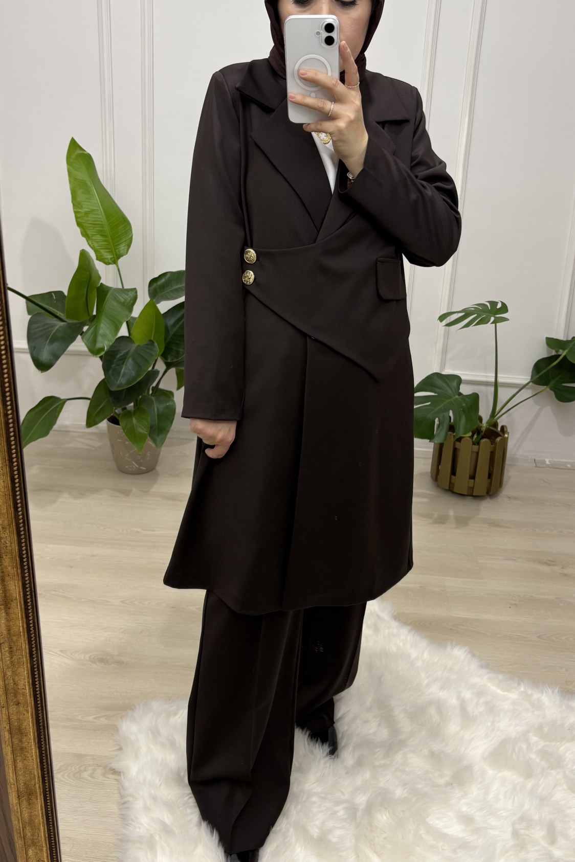 Ürün Özellikleri: Ceketimiz Astarlıdır, Omuzları Vatkalıdır Arkadan A Pile Detayı Mevcuttur, Düğmeler Metal dir Pantolon Ön Kemer Arka Lastiklidir İspanyol Paçadır Önden Dikişli Yandan Gizli Fermuarlıdır.